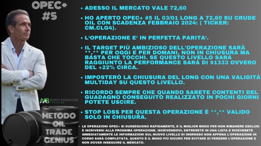 Cari sottoscrittori dell’operazione OPEC+ #5 di Marco Bernasconi Trading,