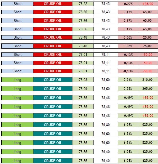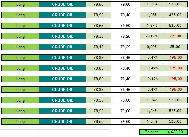 Se si usa un moltiplicatore 100, ogni 100 centesimi di movimento del petrolio WTI corrispondono a 100$ (esempio: se sono posizionato long e il petrolio WTI passa da 78$ a 79$ allora l'operazione ha reso 100$). Margine per aprire 1 contratto 700€.