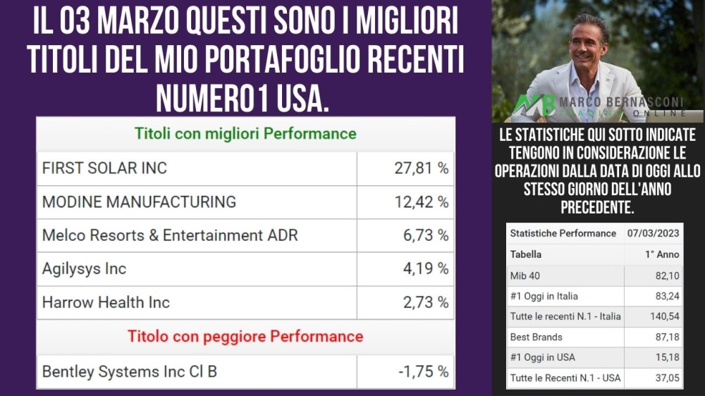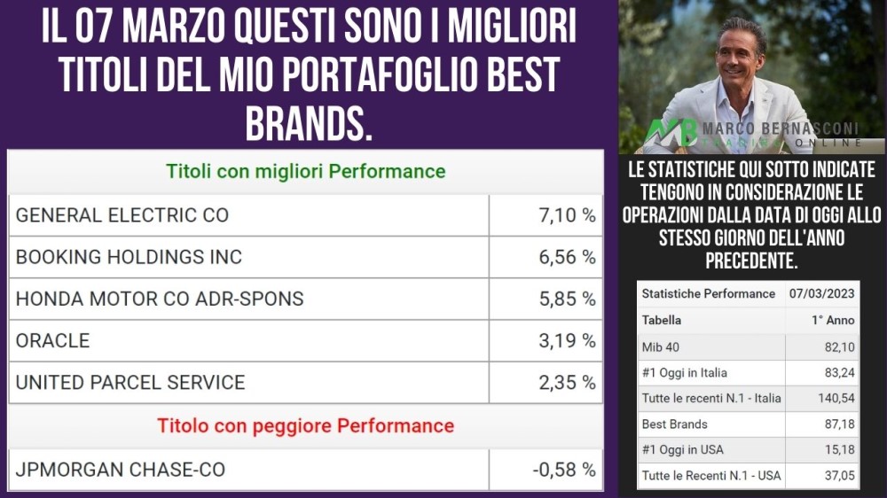 Il 07 Marzo, i titoli con le migliori performance del portafoglio Best Brands di Marco Bernasconi sono stati:
