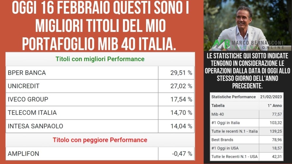 Eleva il tuo trading: scopri il patrimonio netto e le mie performance migliori del 21 Febbraio 2023 nel mercato italiano.