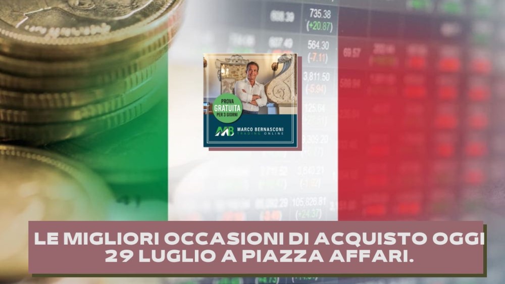 Le migliori occasioni di acquisto oggi 29 Luglio a Piazza affari.