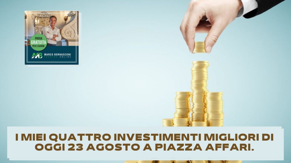 I miei quattro investimenti migliori di oggi 23 agosto a Piazza Affari.