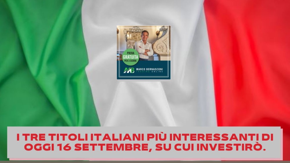 I tre titoli italiani più interessanti di oggi 16 Settembre, su cui investirò.