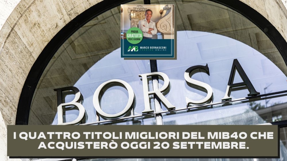 I quattro titoli migliori del Mib40 che acquisterò oggi 20 Settembre.