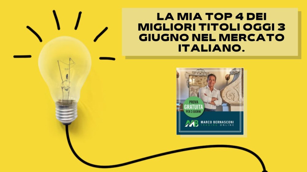 La mia Top 4 dei migliori titoli oggi 3 Giugno nel mercato Italiano.
