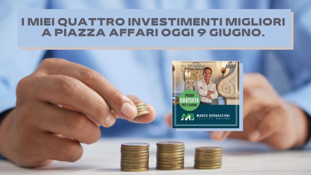 I miei quattro investimenti migliori a Piazza Affari oggi 9 Giugno.