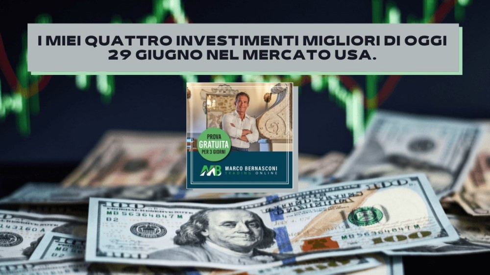 I miei quattro investimenti migliori di oggi 29 Giugno nel mercato USA.