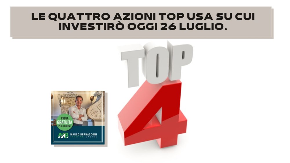 Le quattro azioni top USA su cui investirò oggi 26 Luglio.