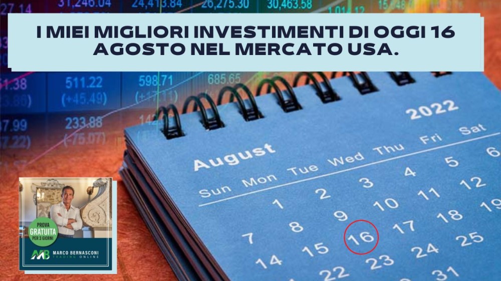 I miei migliori investimenti di oggi 16 agosto nel mercato USA.