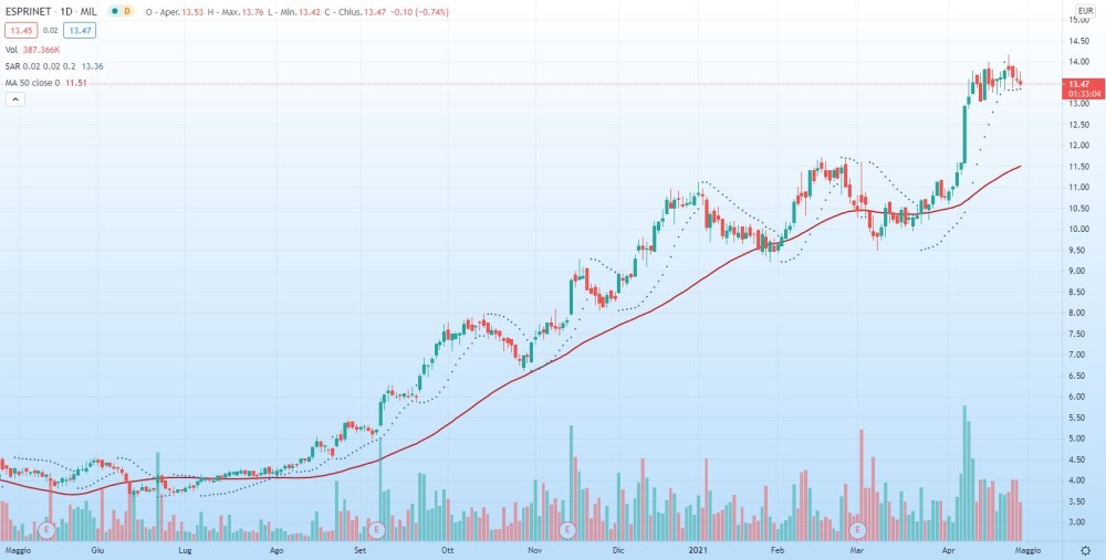 Con Esprinet la performance ottenuta è stata del +27,06% , con ingresso sul titolo il 23 marzo a 10,68 e uscita a 13,57.