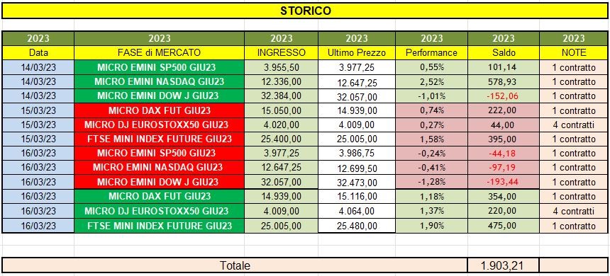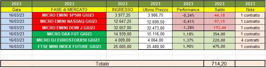 Oggi 20 marzo 2023, ho concluso l'operatività, chiudendo tutte le posizioni aperte il 17 marzo.💼.