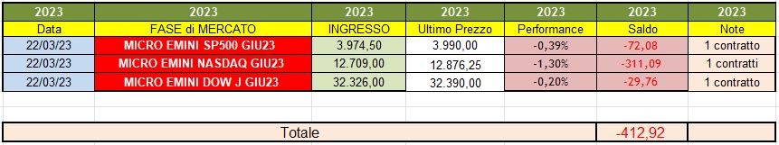 Voglio sottolineare l'importanza della trasparenza: ho pubblicato l'immagine della performance relativa al 23 marzo, con una perdita di €412.