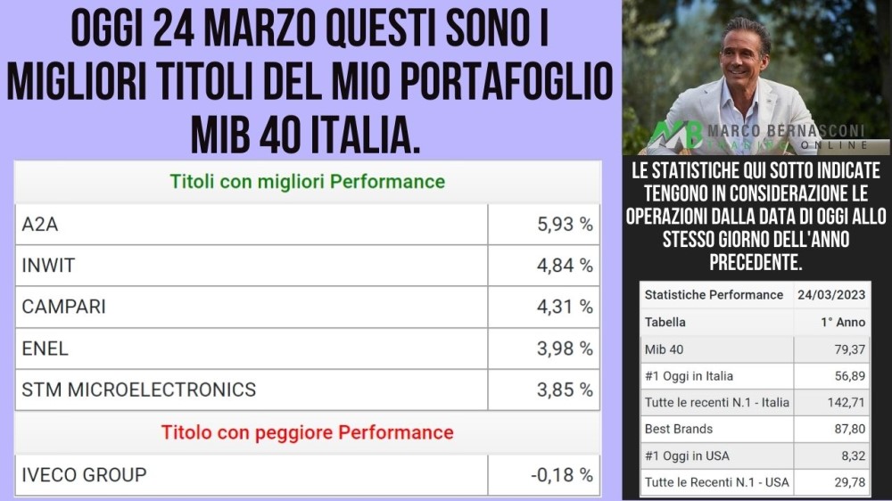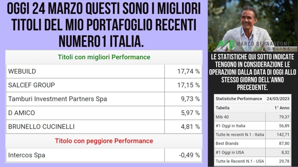Oggi 24 Marzo questi sono i migliori titoli del mio portafoglio recenti numero 1 Italia.