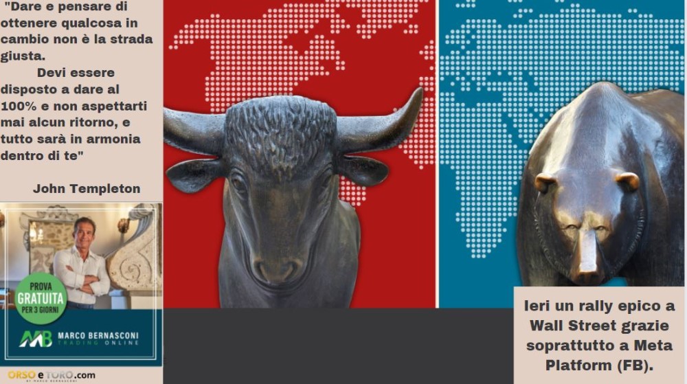 Ieri un rally epico a Wall Street grazie soprattutto a Meta Platform (FB).