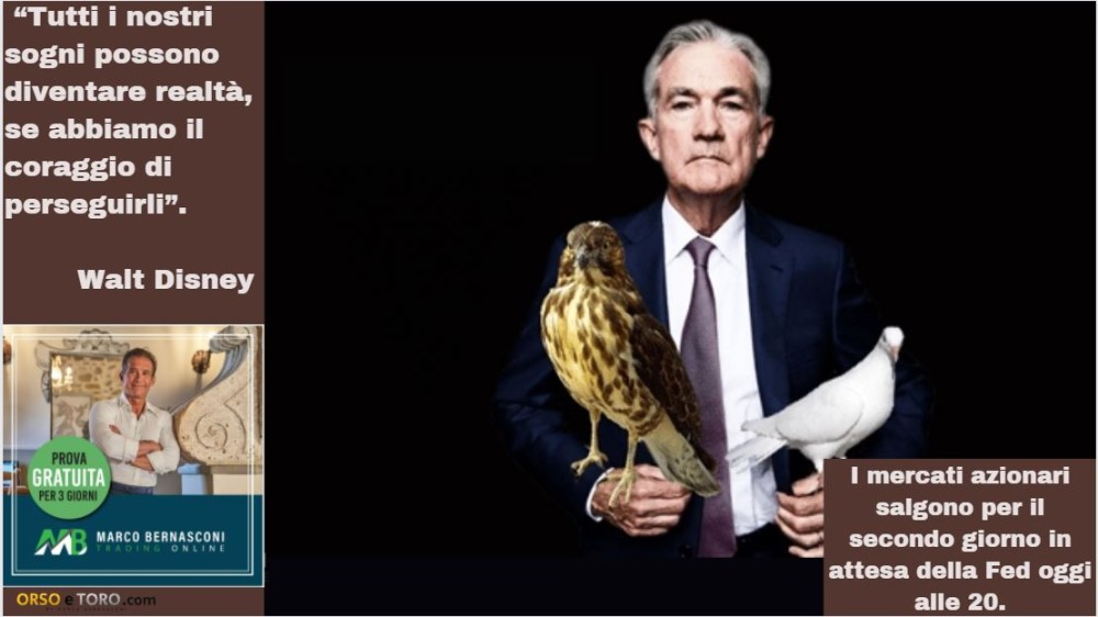 I mercati azionari salgono per il secondo giorno in attesa della Fed oggi alle 20.