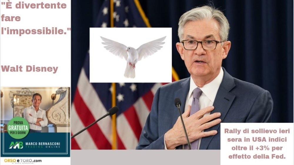 Rally di sollievo ieri sera in USA indici oltre il +3% per effetto della Fed.