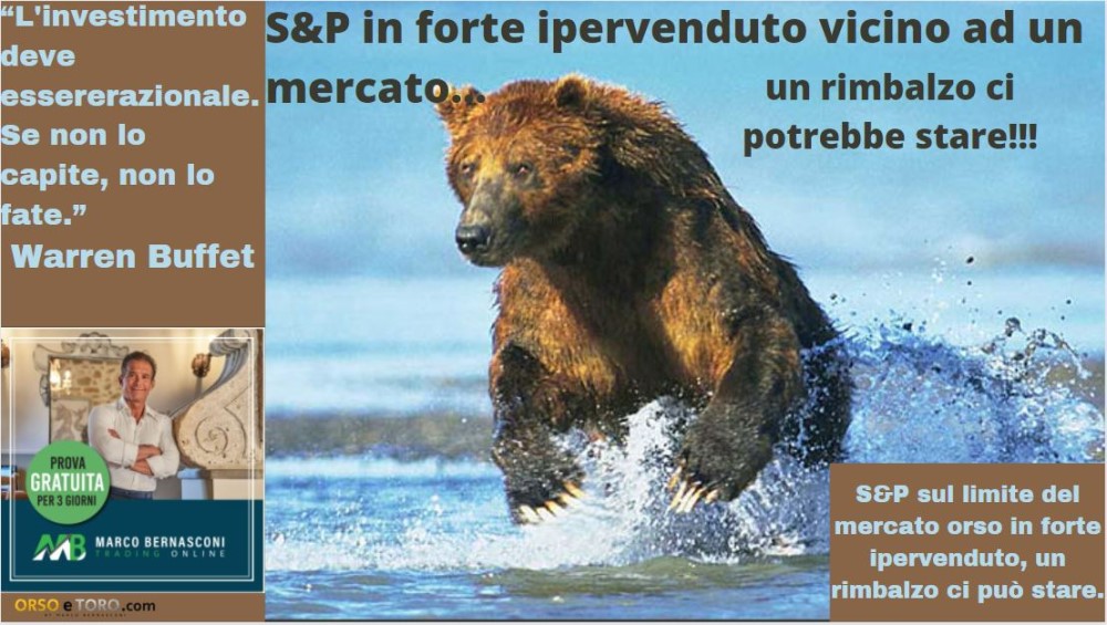S&P sul limite del mercato orso in forte ipervenduto, un rimbalzo ci può stare.