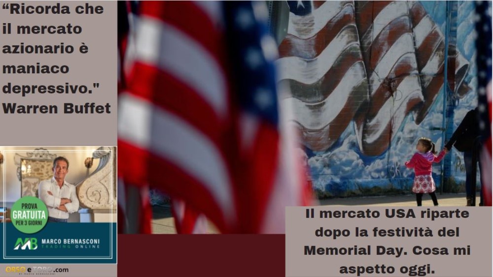 Oggi mercato azionario Usa chiuso per festività, mi aspetto una seduta poco mossa.