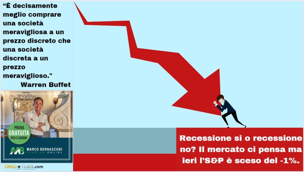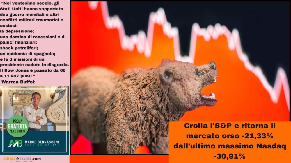 Crolla l'S&P e ritorna il mercato orso -21,33% dall’ultimo massimo Nasdaq -30,91%
