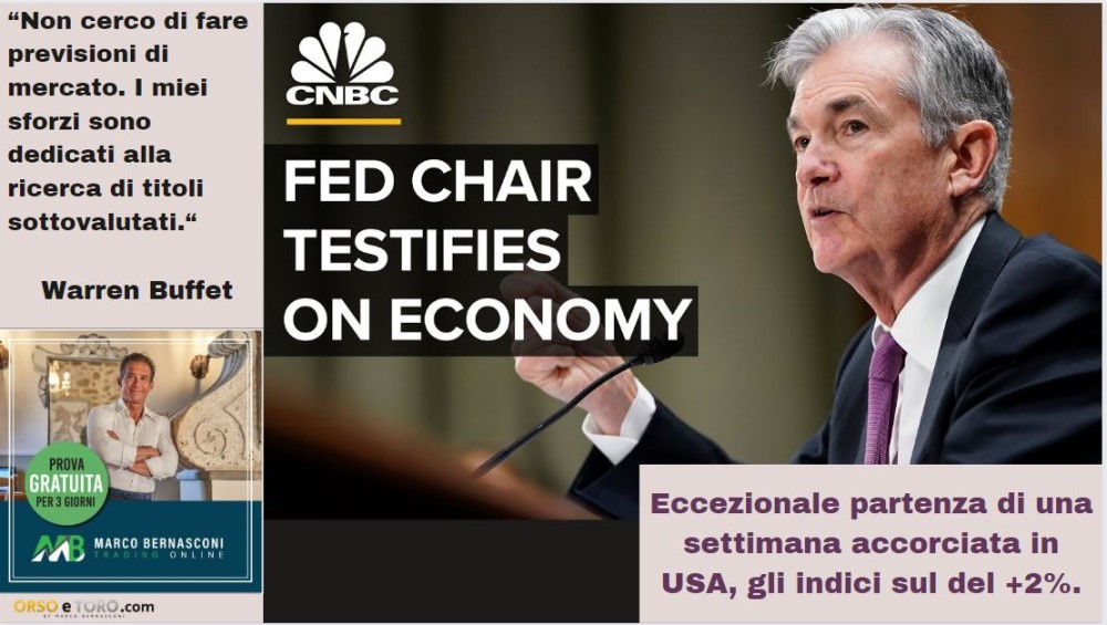 Eccezionale partenza di una settimana accorciata in USA, gli indici sul del +2%.
