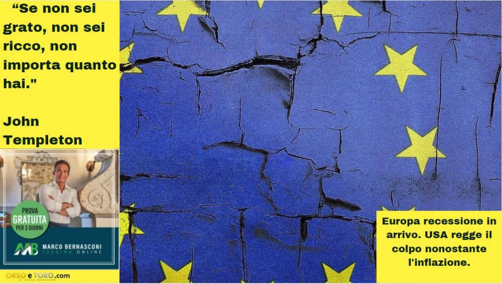 Europa recessione in arrivo. USA regge il colpo nonostante l'inflazione.
