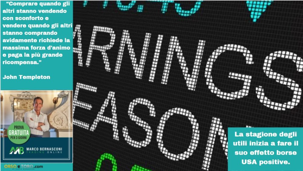 La stagione degli utili inizia a fare il suo effetto borse USA positive.
