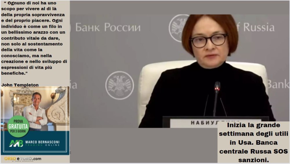 Inizia la grande settimana degli utili in Usa. Banca centrale Russa SOS sanzioni.