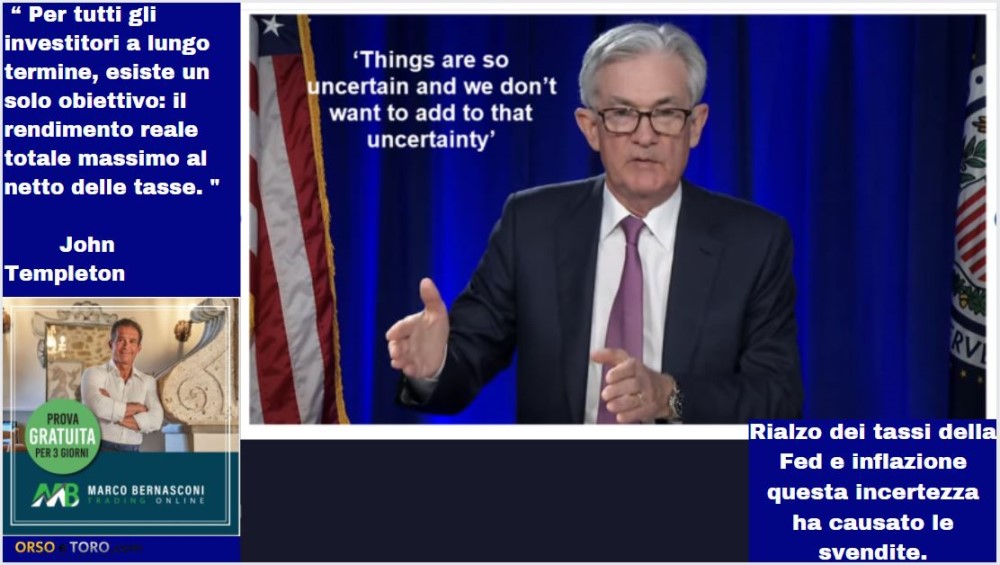 Rialzo dei tassi della Fed e inflazione questa incertezza ha causato le svendite.