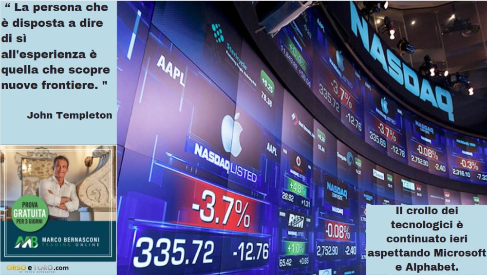 Il crollo dei tecnologici è continuato ieri aspettando Microsoft e Alphabet.