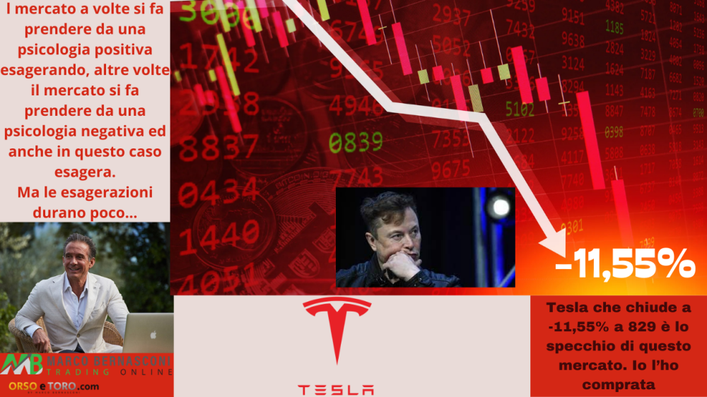 Tesla che chiude a -11,55% a 829 è lo specchio di questo mercato. Io l’ho comprata.