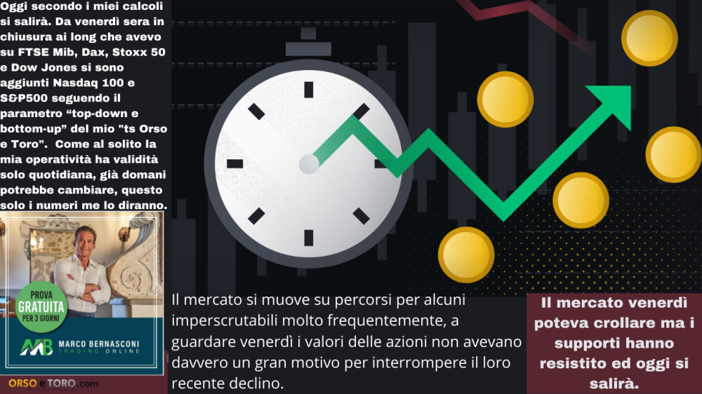 Il mercato venerdì poteva crollare ma i supporti hanno resistito ed oggi si salirà.