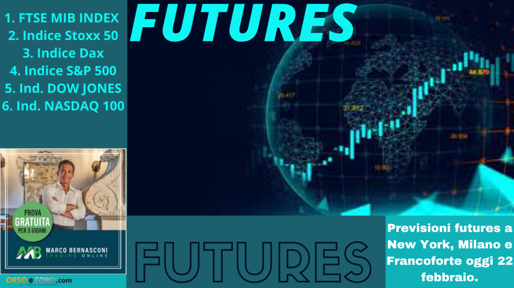 Previsioni futures a New York, Milano e Francoforte oggi 22 febbraio.