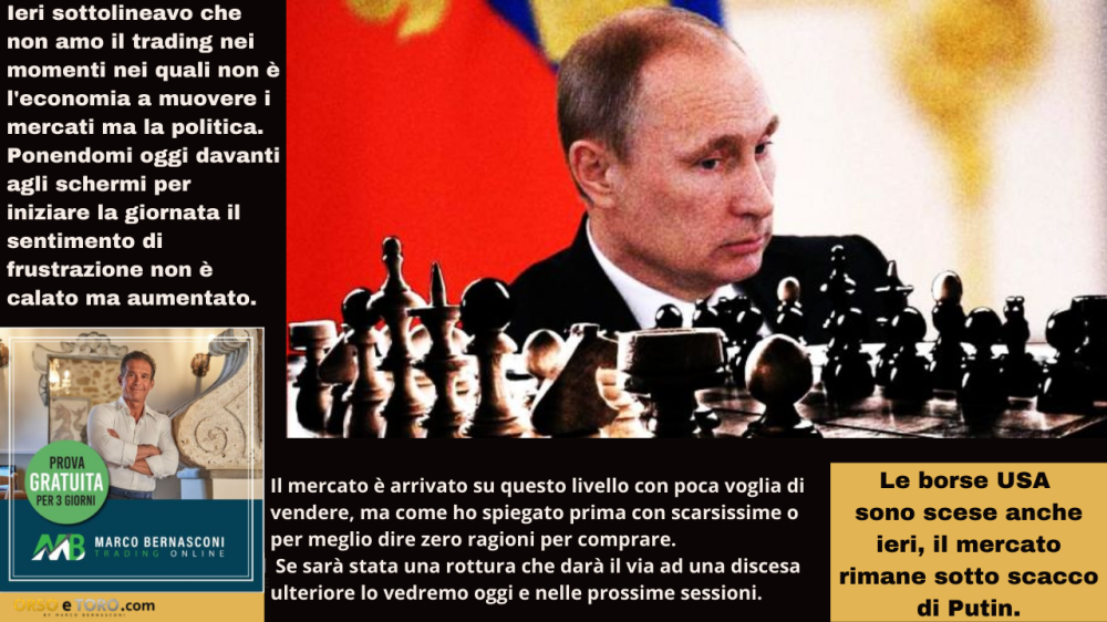 Le borse USA sono scese anche ieri, il mercato rimane sotto scacco di Putin.