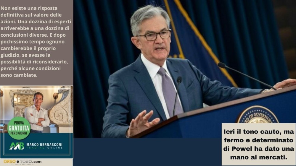 Ieri il tono cauto, ma fermo e determinato di Powel ha dato una mano ai mercati.