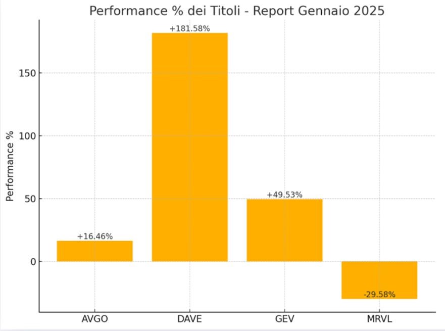 alt="Grafico performance titoli Gennaio 2025" width="600">