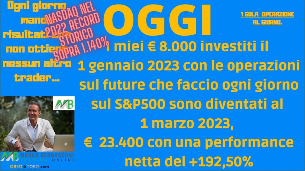 Performance record sui futures: +164,89% con Marco Bernasconi Trading