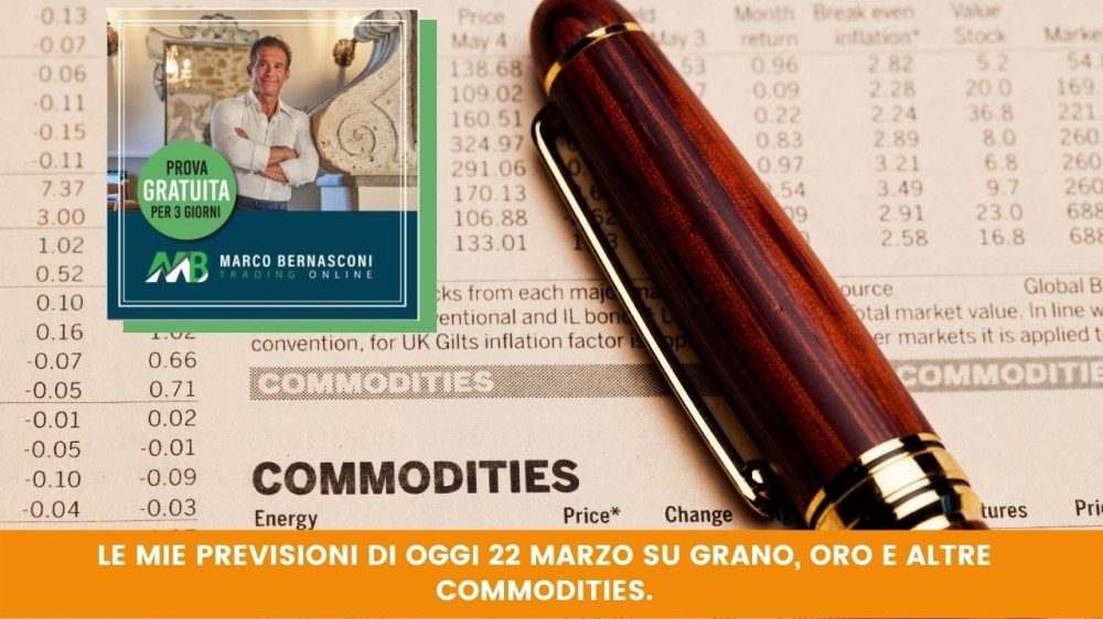 Le mie previsioni di oggi 22 marzo su grano, oro e altre commodities.