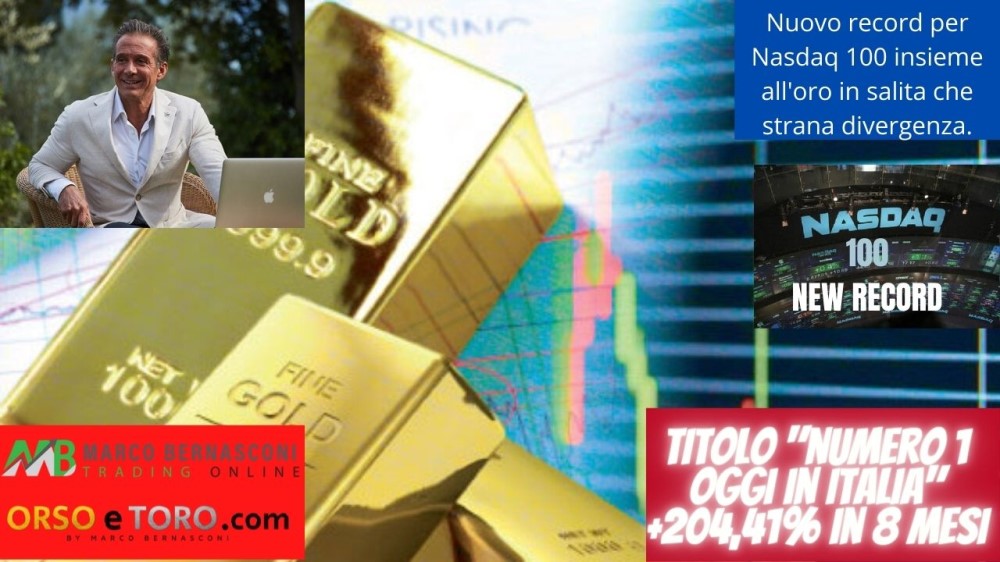 Nuovo record per Nasdaq 100 insieme all'oro in salita che strana divergenza.