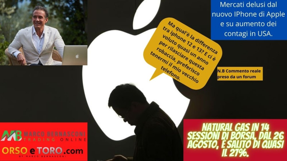 Mercati delusi dal nuovo IPhone di Apple e dall'aumento contagi in USA