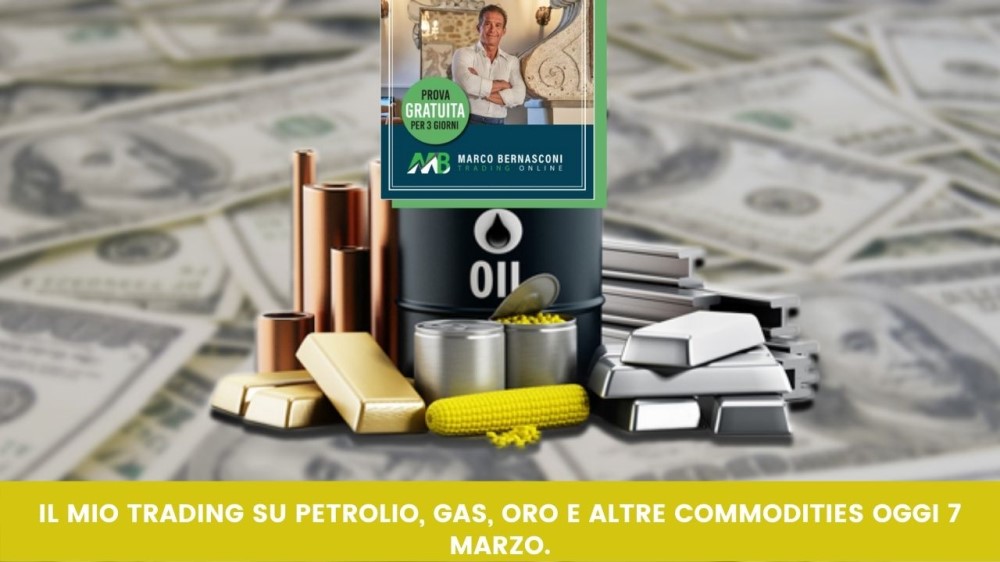 Il mio Trading su Petrolio, gas, oro e altre commodities oggi 7 marzo.