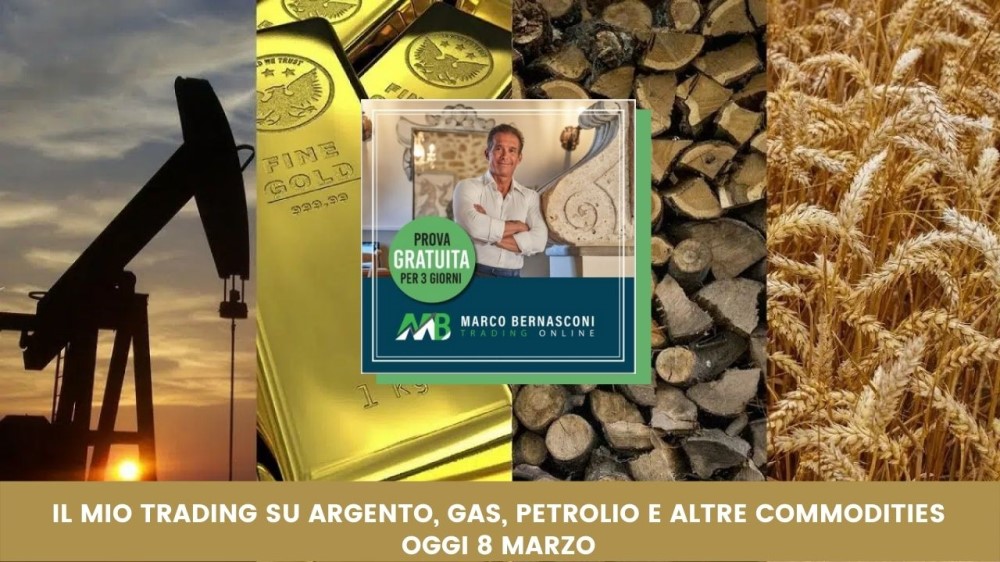Il mio trading su Argento, gas, petrolio e altre commodities oggi 8 marzo