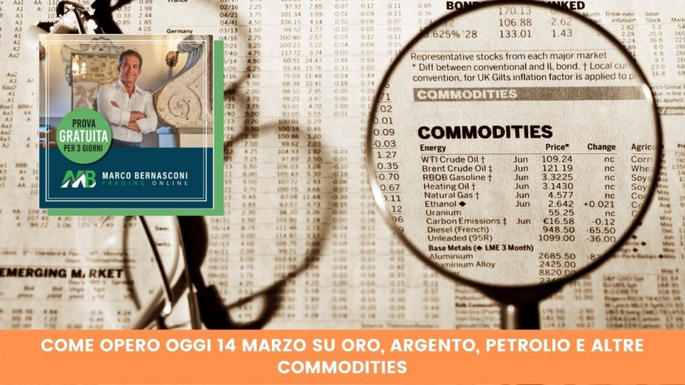 Come opero oggi 14 marzo su oro, argento, petrolio e altre commodities