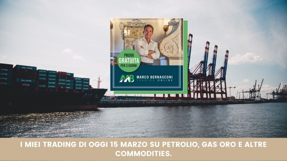 I miei trading di oggi 15 marzo su petrolio, gas oro e altre commodities.