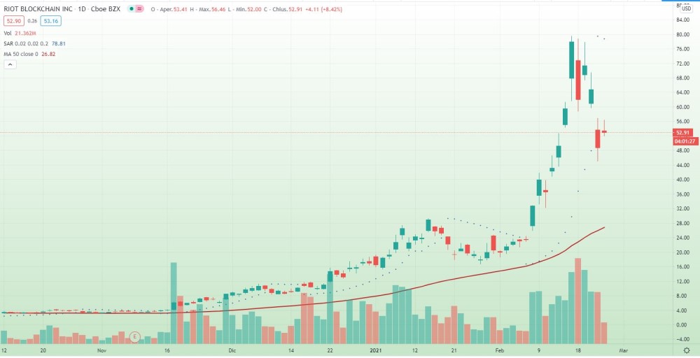 Con Riot Blockchain Inc la performance ottenuta è stata del +132,71%, con ingresso sul titolo il 22 gennaio a 20,97 e uscita a 48,80.