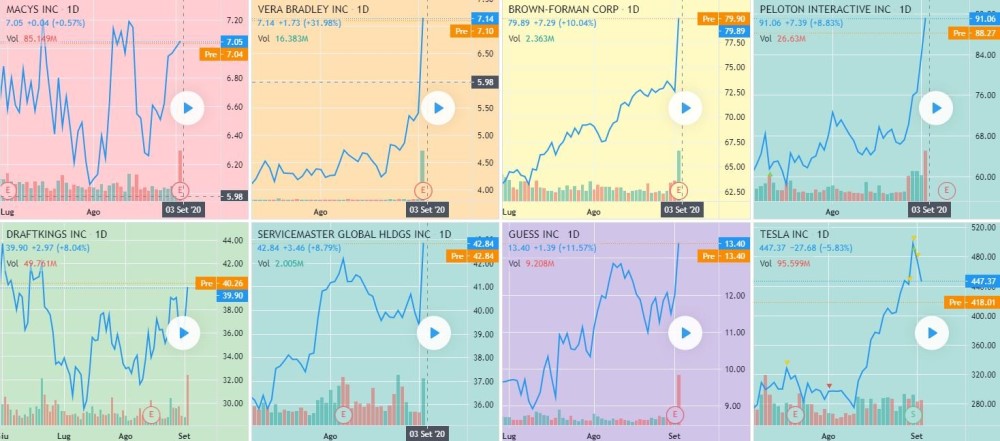Qui un estratto delle statistiche sulle performance di oggi sul portafoglio "BEST BRANDS USA" per il 03 settembre 2020 TITOLI ESAMINATI 27 DI QUESTI TITOLI ... ➔